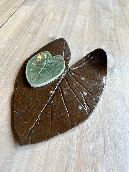 Elephant Ear leaf trivet and coaster set