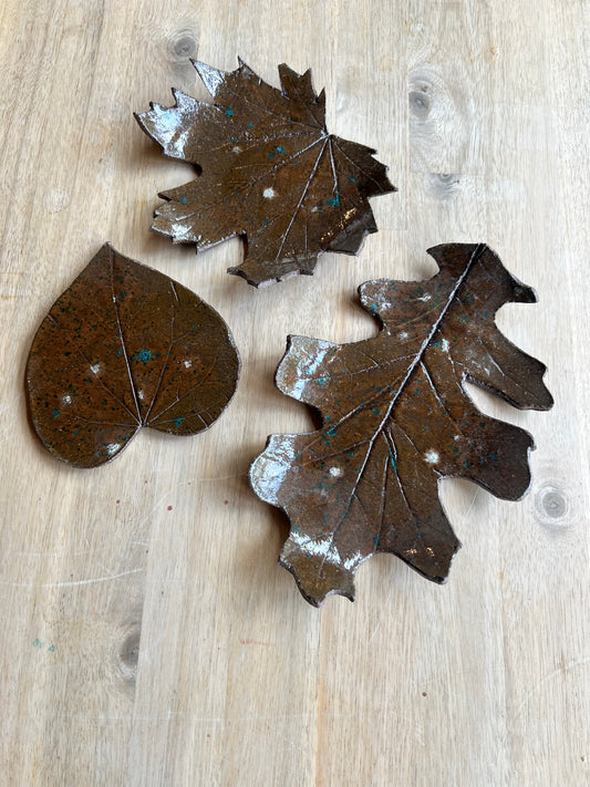 Set of 3 ceramic leaf coasters