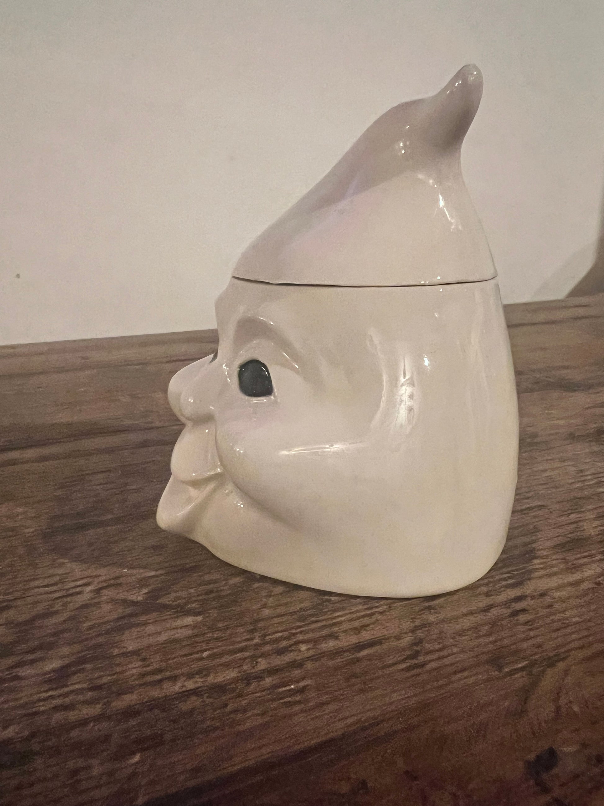 This is a ceramic ghost jar made from a vintage pottery mold. Perfect for Halloween.